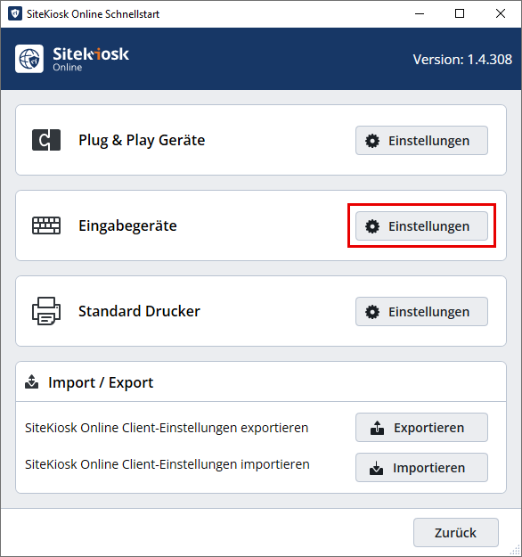 Damit externe Geräte eingebunden werden können, ist es notwendig den Expert-Mode von SiteKiosk Online zu aktivieren