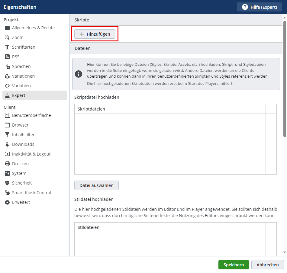 Unter „Einstellungen“ finden Sie den Bereich „Expert-Mode“. Diesen können Sie nutzen, um Skripte einzufügen.