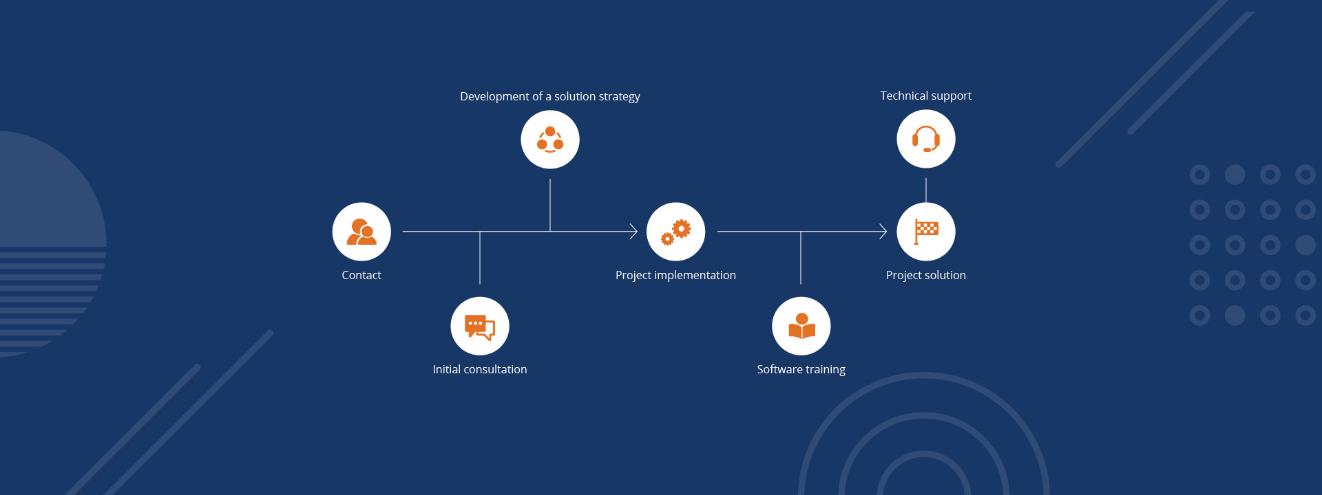 We expand the features of our standard software and align it entirely to your needs. It does not matter whether it is a small project with an effort of a few hours to several days or a complex, large-scale project lasting several months. Our many years of experience distinguish us as a reliable partner in helping you meet your goals. Thanks to our agile way of working, we can react flexibly to change requests within the given framework. We understand that requirements often change during the course of a project.