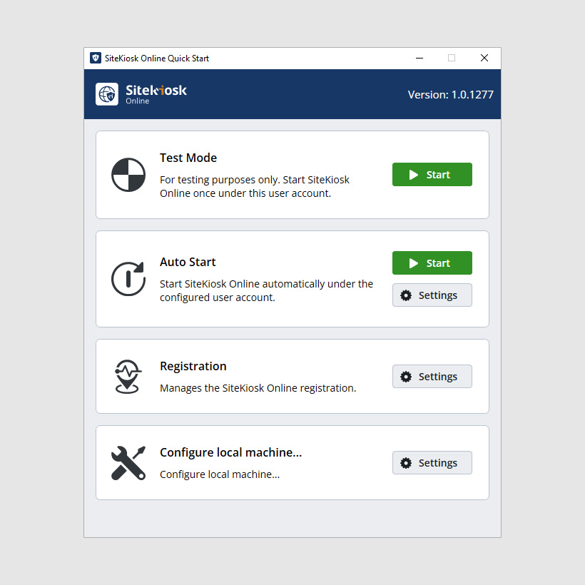 For added security, SiteKiosk Online replaces the Windows shell with a secure SiteKiosk Online shell. Access to the operating system and the normal browser is blocked to ensure the tamper proof operation of the system.