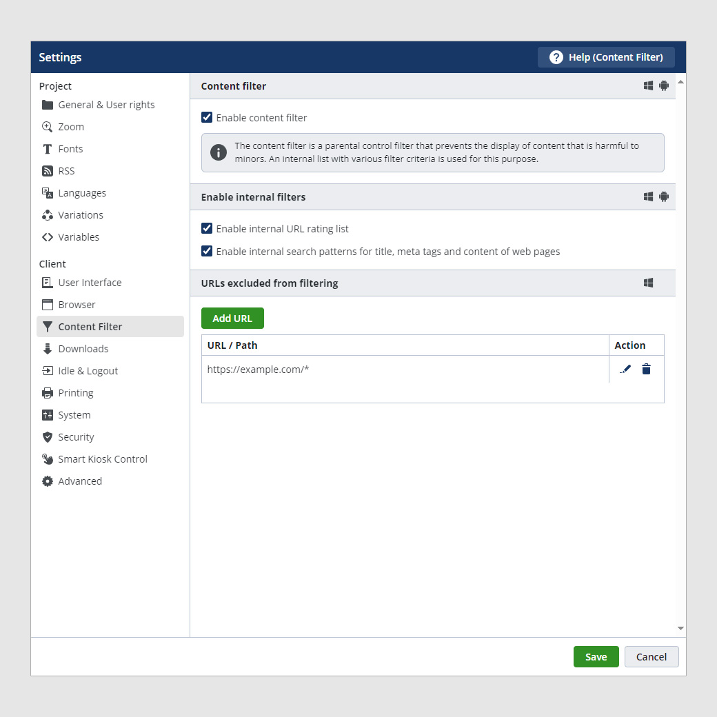 SiteKiosk Online provides reliable protection for your unsupervised digital signage displays, tablets, and interactive/self-service terminals. Prevent access to the operating system, restrict web content on Windows and Android devices, and ensures fail-safe operation. You can make essential adjustments effortlessly using the built-in online configuration tool, with no programming skills required.