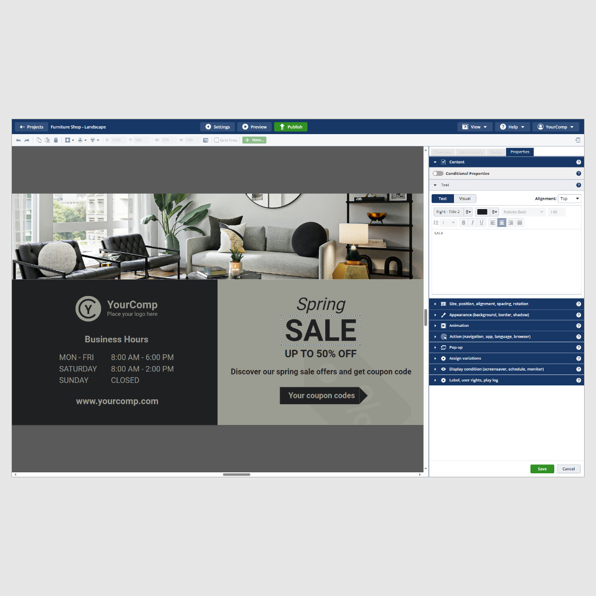 You can plan and automate when your content is displayed, ensuring that your audience always receives up-to-date and relevant information.